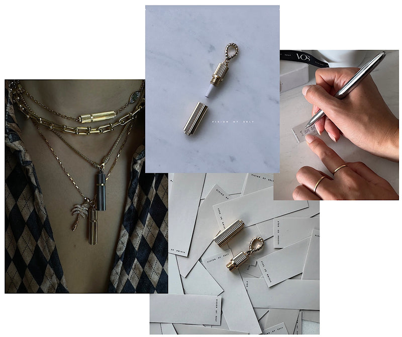 Self-personalize your piece by writing on a Vision Of Self paper—a note, intention, reminder, promise, or something you want to carry. Roll it up, place it inside, and wear it with meaning. Change the note at anytime.